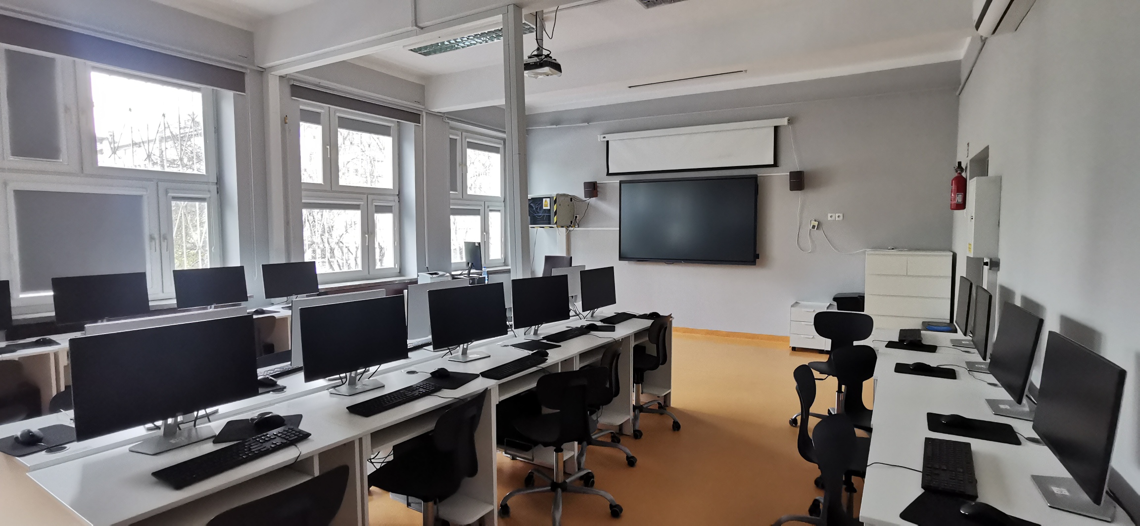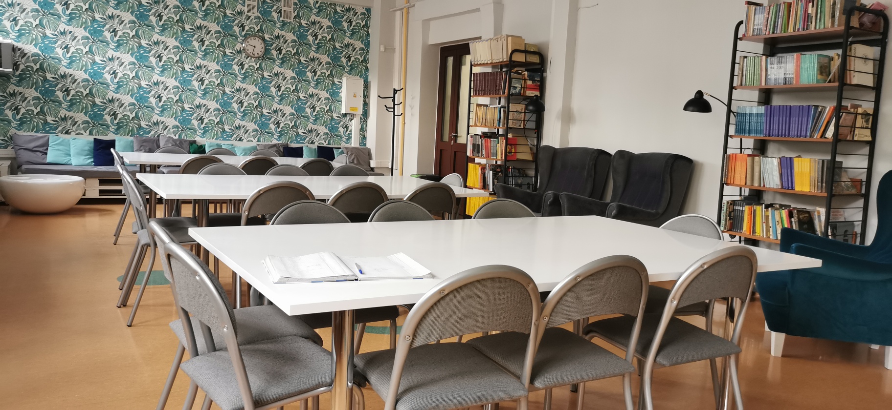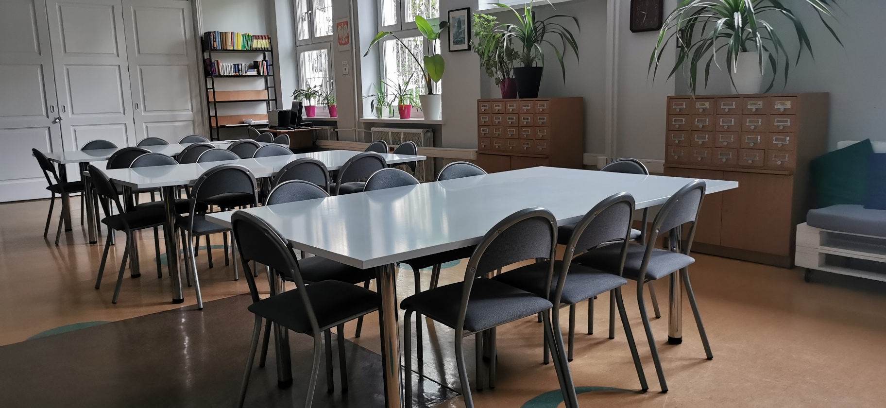 Nasza szkoła wyróżnia się nowoczesnymi i funkcjonalnymi wnętrzami. Sale lekcyjne są odnowione oraz wyposażone w nowoczesny sprzęt. Sale lekcyjne są klimatyzowane. Przestrzenie wspólne są przestronne, zapewniają wygodne miejsce do wypoczynku.