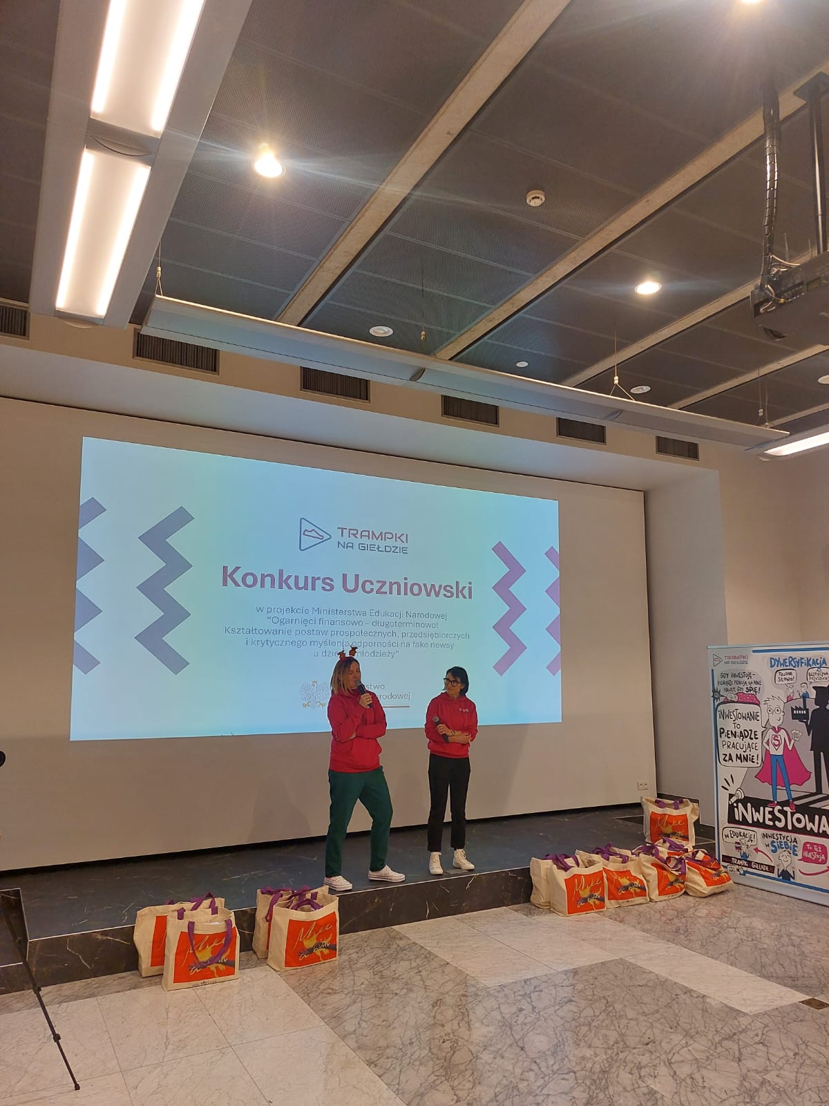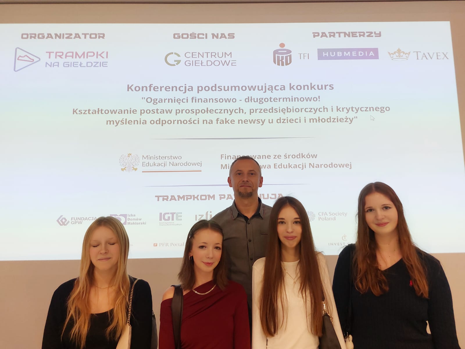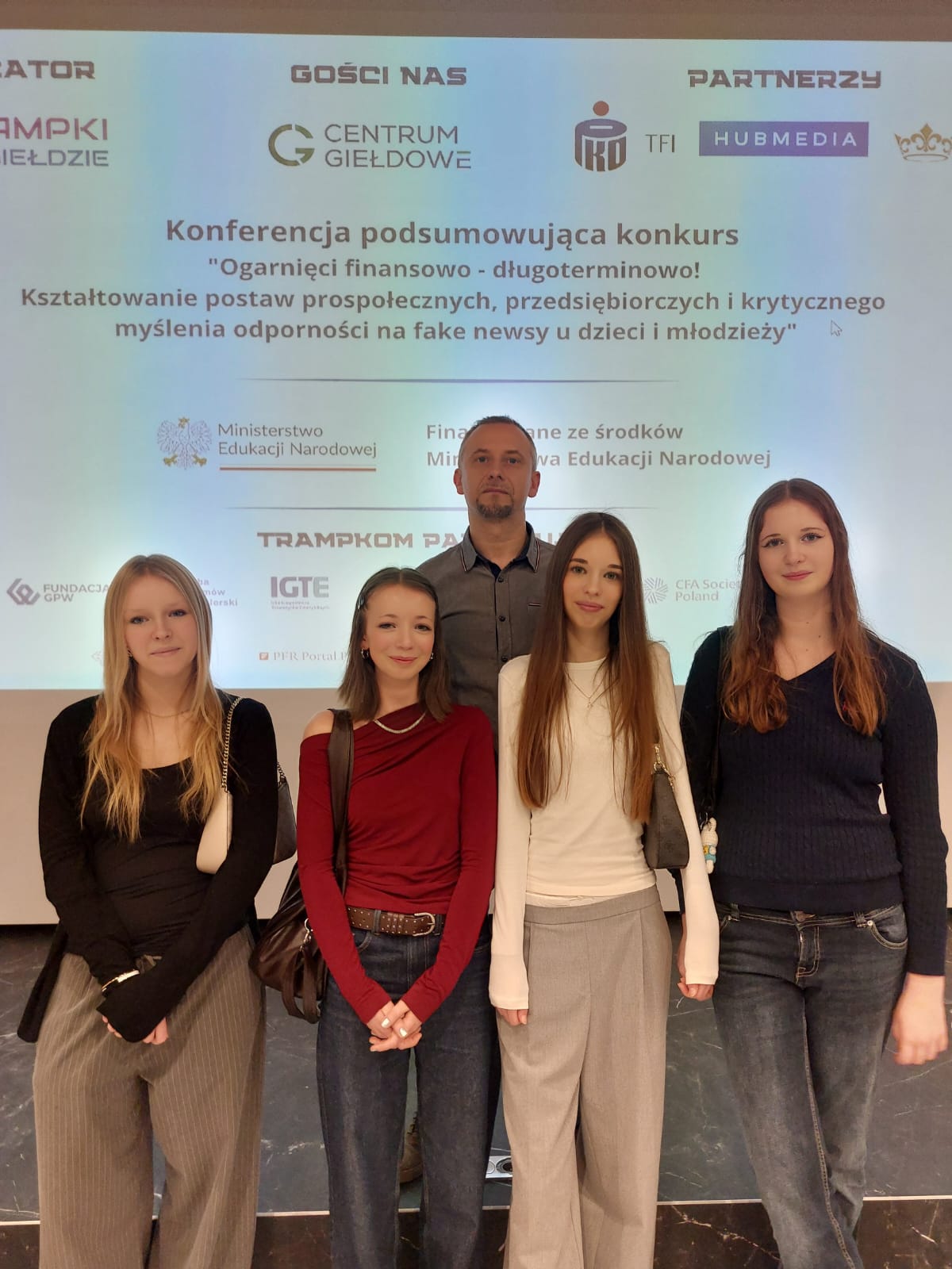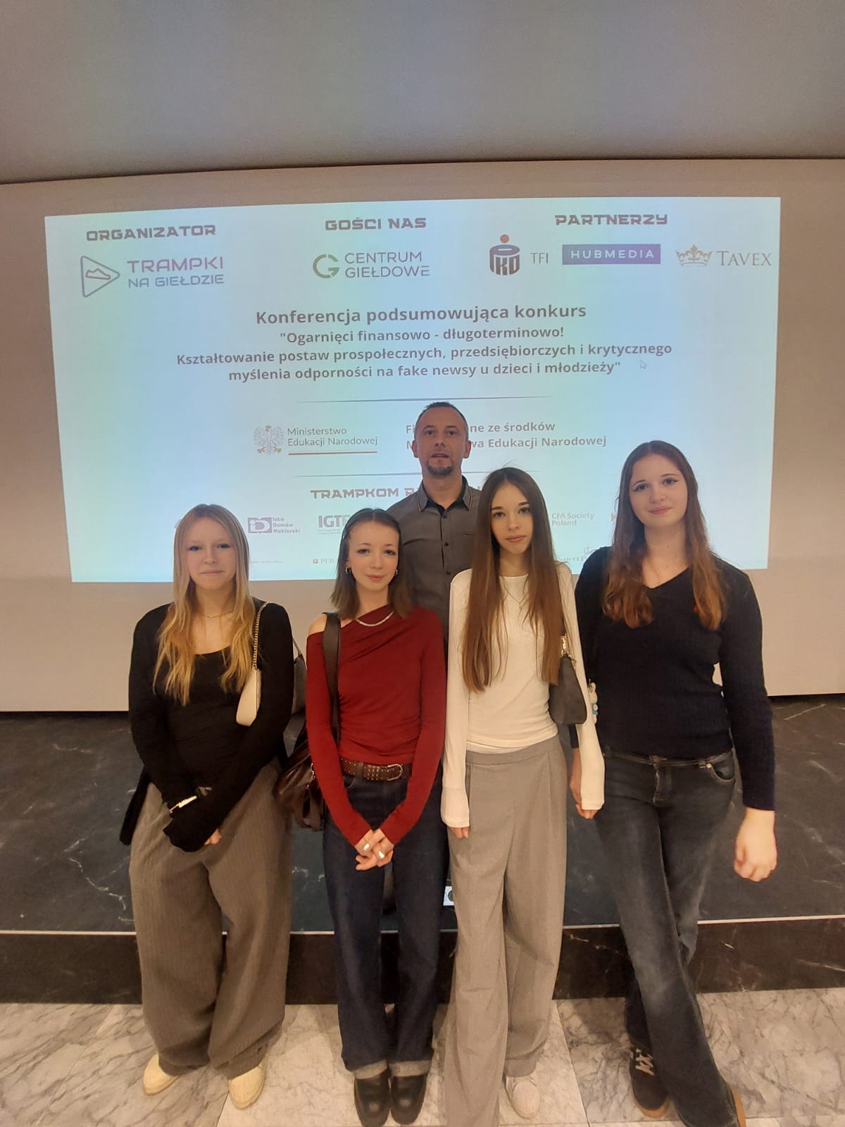 Z dumą informujemy, że projekt przygotowany przez Arinę Kremenną i Aleksandrę Białek z klasy 2C znalazł się w gronie dziesięciu najlepszych prac w Polsce w ogólnopolskim konkursie Ogarnięci finansowo - długoterminowo, organizowanym przez Fundację Trampki na Giełdzie. W konkursie uczestniczyło 250 szkół z całej Polski, co czyni to wyróżnienie szczególnie znaczącym.